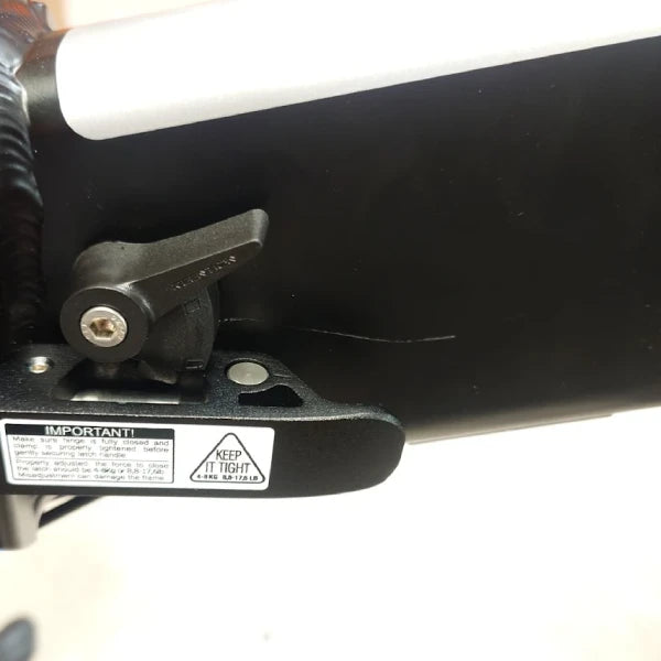 Slight dent with uneven paint around the hinge edge. Does not affect the folding system.